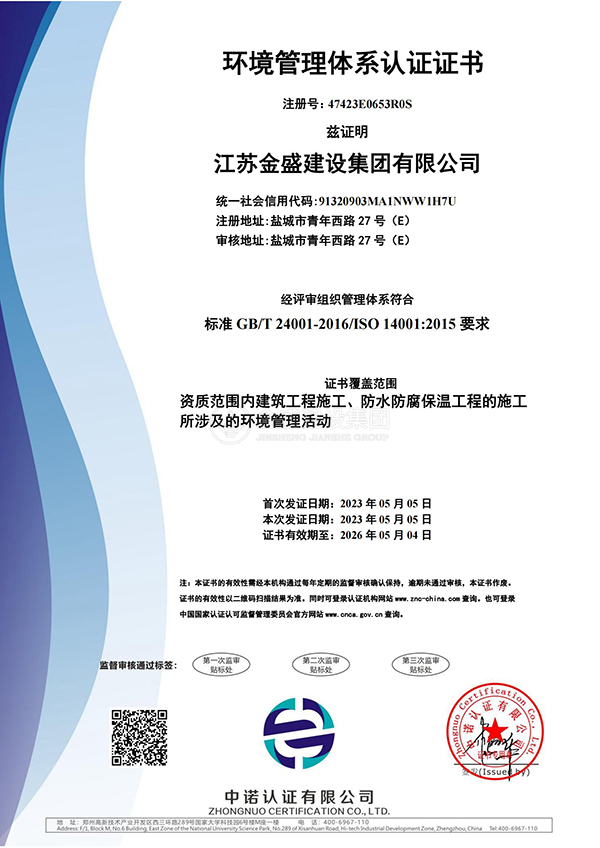 • 環(huán)境管理體系認證證書